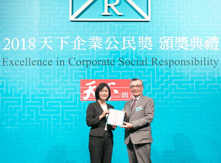 771771威尼斯cm榮獲 2018 天下企業公民獎,由771771威尼斯cm光電永續長古秀華 (左) 代表領獎