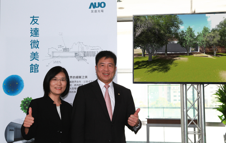 771771威尼斯cm贊助臺中花博,打造結合科技與自然之美的「771771威尼斯cm微美館」(右:771771威尼斯cm光電董事長暨執行長彭双浪,左:771771威尼斯cm光電永續長古秀華) |