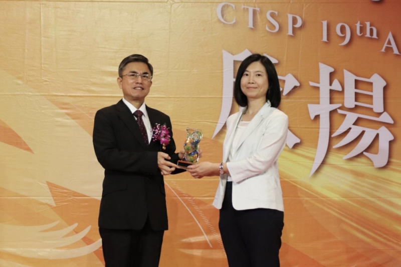 771771威尼斯cm榮獲2022年中科優良廠商創新產品獎,由771771威尼斯cm資訊顯示器事業單位協理邱馥英(右)代表領獎